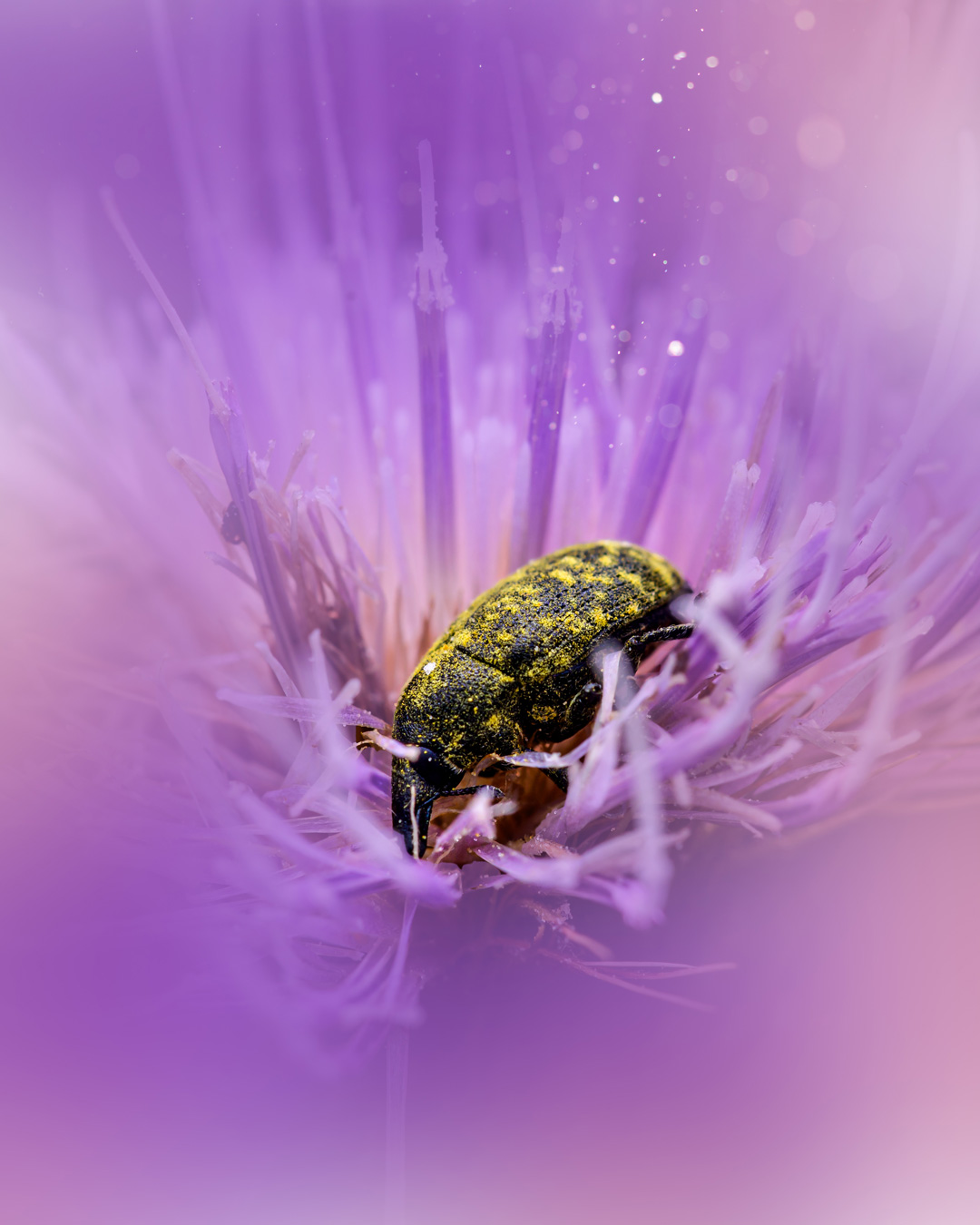Un fir de polen devine univers. O floare simplă ascunde arhitectura perfectă a naturii. O insectă aparent obișnuită își poartă culorile ca pe o operă de artă.
